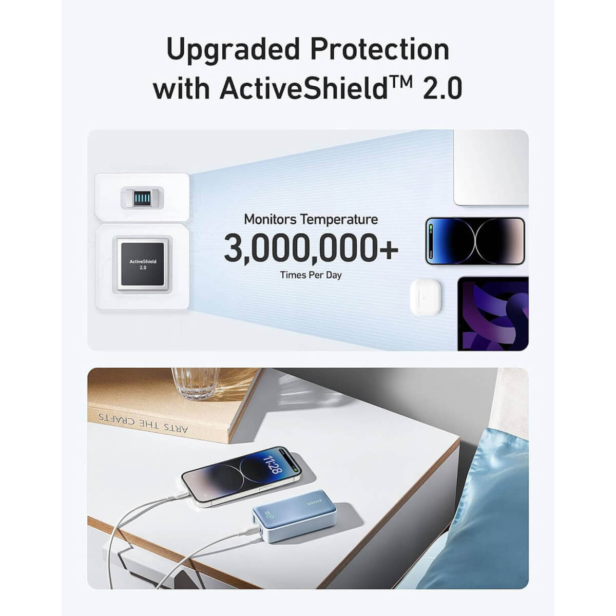 - Napredne sigurnosne karakteristike: zaštićen naprednim sigurnosnim sistemom ActiveShield 2.0, Anker 533 Power Bank prolazi više od 3.000.000 provera temperature dnevno kako bi se osigurala optimalna performansa i zaštita. .