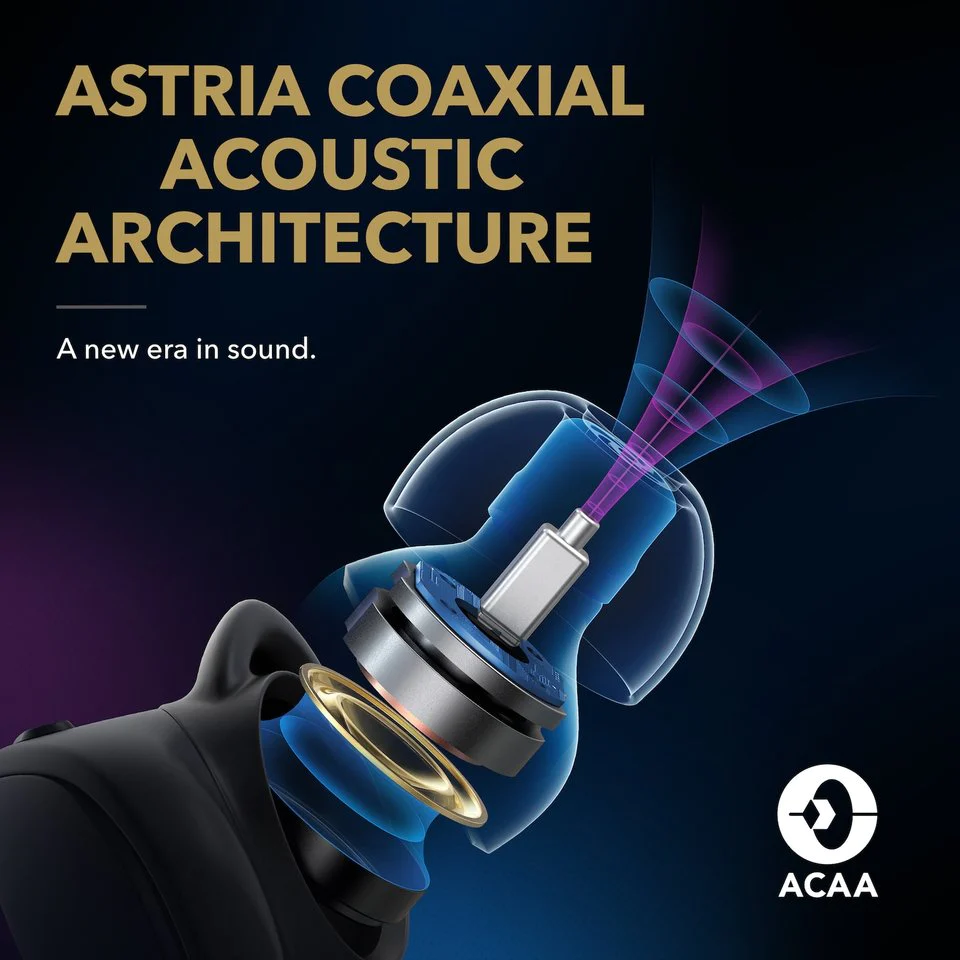 - Astria koaksijalna akustična arhitektura: Vrhunski dizajn koji kombinuje prilagođenu Knowles armaturu i 11 mm dinamički drajver. Astria potpuno eliminiše smetnje dok proizvodi uravnotežene visoke i niske tonove.
